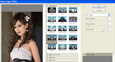 Step 4: You can trace the areas of color divided by the Cutout filter with the Poster Edges Filter. For this example the Edge Thickness is set to 2, Edge Intensity to 1 and Posterization to 4. Click OK.