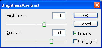 Step 6: And finally, to add to the ‘colored’ effect, a Brightness/Contrast adjustment layer will help take away the natural highlights/shadows even more.
