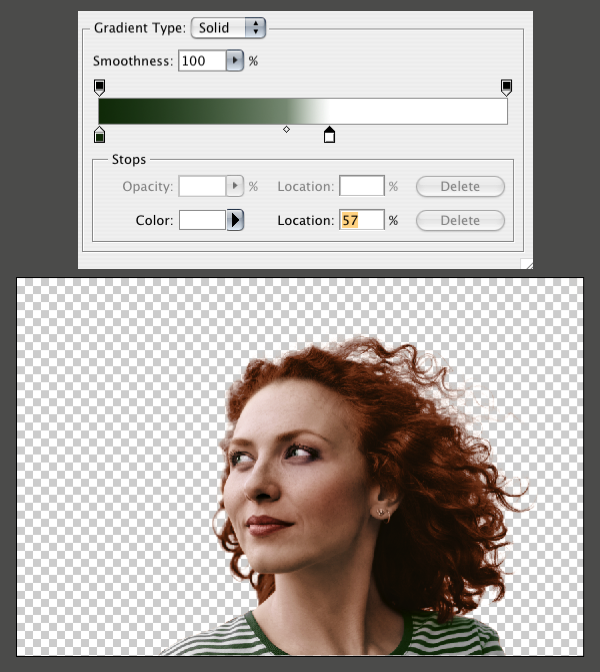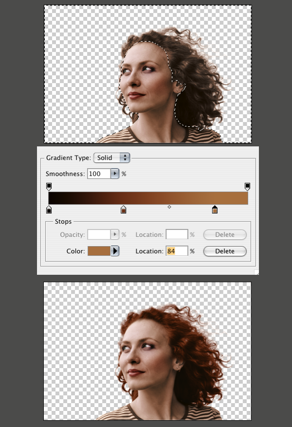 As an added bonus, I applied the techniques from the Super Quick and Easy Facial Retouching tutorial to smooth out her face a little bit. As you can tell, I decided to make her red haired, but you can make your gradients whatever color you would like. She just seemed like a redhead to me. Here is the final image.