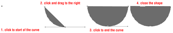There are two ways to deal with curved shapes using the pen tool. The first one is to use a curve node which creates a smoother curve and the other is to use lots of nodes to trace the curve.