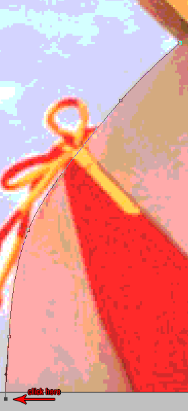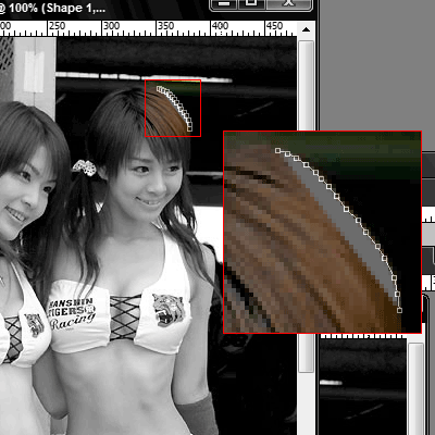 Click on the background layer to activate it then press P to select the pen tool, using the above image as a reference click on the starting point. You will notice that a new layer is created named “Shape 1″ on the Layers Palette. That is normal and this simply means that we are working on a vector shape. Follow the guide below to start tracing the outline of the skin of the model in the picture.